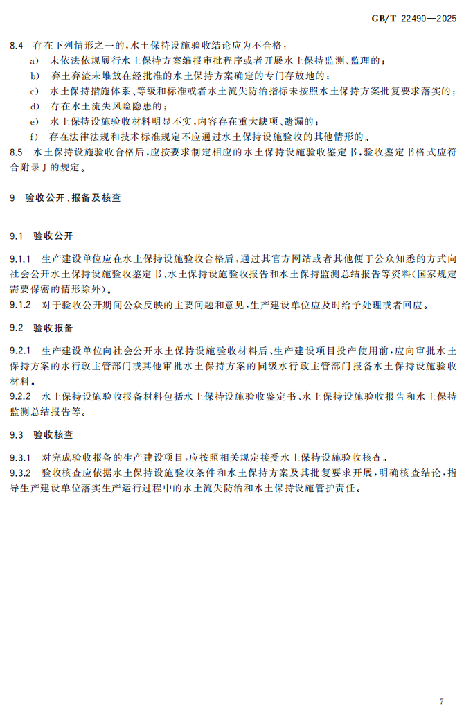 生产建设项目水土保持设施验收技术规程(GB/T22490-2025)